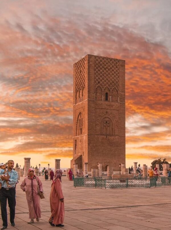 - Rabat, capital del país: exteriores del Palacio Real, Mausoleo de Mohamed V y Torre Hassan.